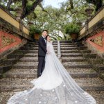 Armed with umbrellas and good humor, we proceeded to capture some truly unique shots that we never could have planned for. The rain added an extra layer of texture and beauty to the photos, and our clients were happy to embrace the wet and wild atmosphere. We were also fortunate to have the whole garden to ourselves for 2.5 hours, thanks to Vizcaya’s Premium Sunrise Permit, which gave us the freedom to explore and experiment without any interruptions.